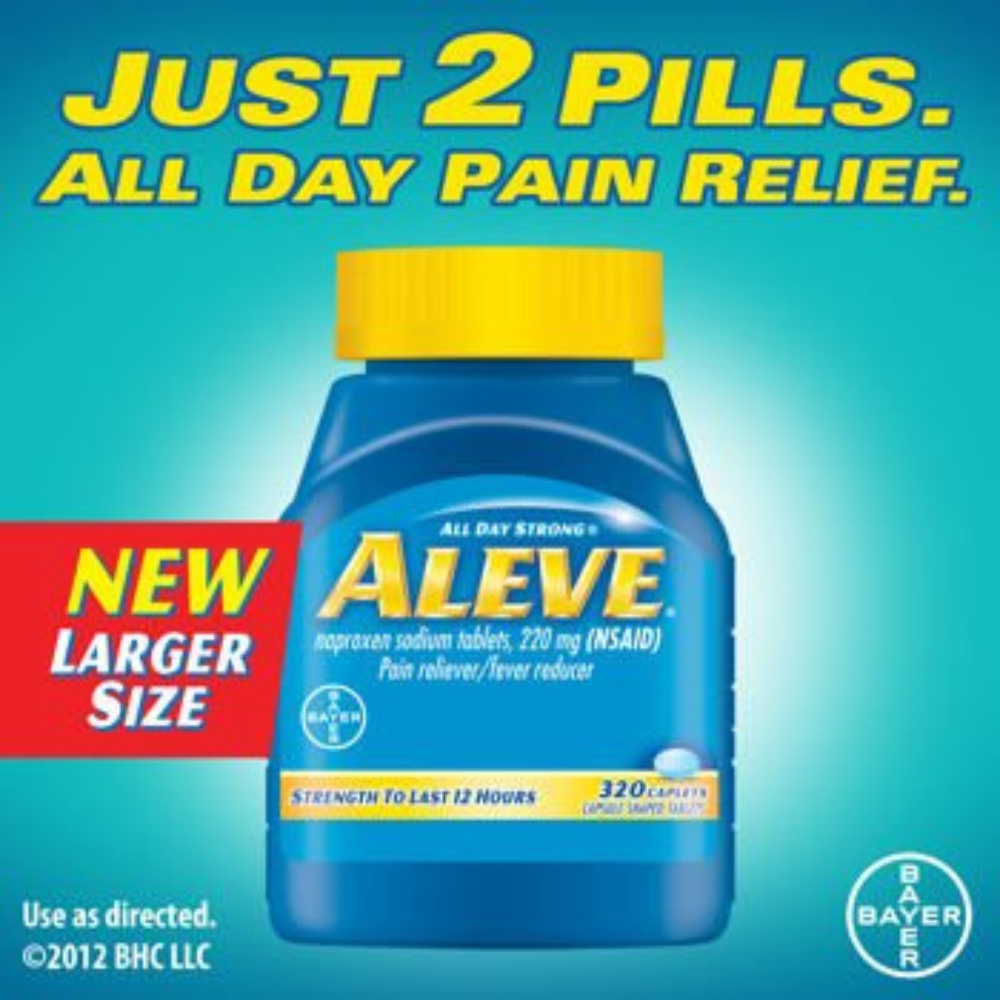 Product description Aleve ALL DAY Strong Pain/fever Reducer Naproxen Sodium Tablets , 220 Mg (Nsaid) – 320 Caplets Product details Shipping Weight: 5.6 ounces