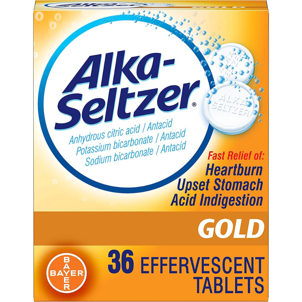 For fast effervescent relief of acid indigestion, upset stomach and heartburn, turn to Alka-Seltzer Gold. It’s safe for sensitive stomachs and it does not contain aspirin.