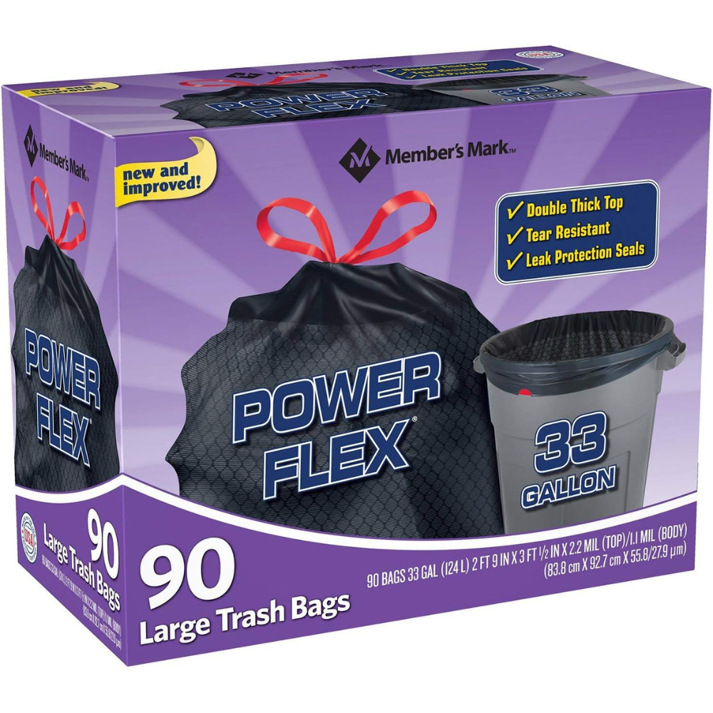 Member’s Mark 33-Gallon Power-Guard Drawstring Trash Bags are tough enough to handle any household chore. These extra-large trash bags have a drawstring top and are embossed for flexibility, making them ideal for a range of heavy-duty tasks.