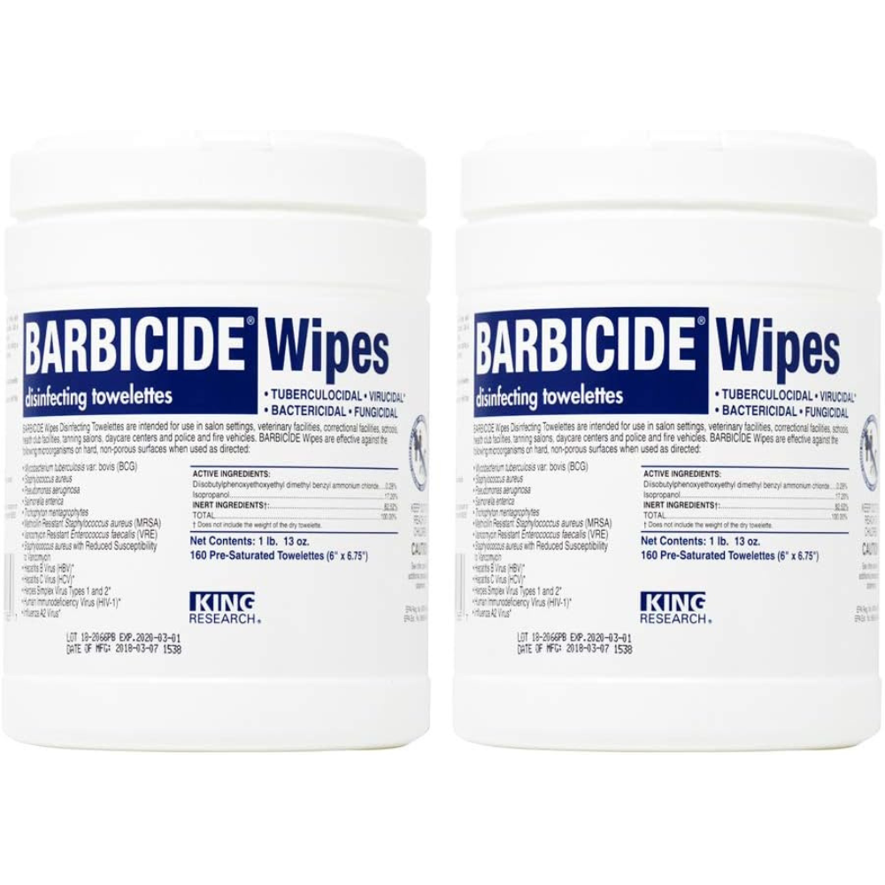 These easy-to-use disinfecting wipes are EPA-Registered bactericidal, virucidal, fungicidal & tuberculocidal with a 2-minute contact time, assuring your salon, spa or barber shop quickly meets sanitation and disinfection guidelines.