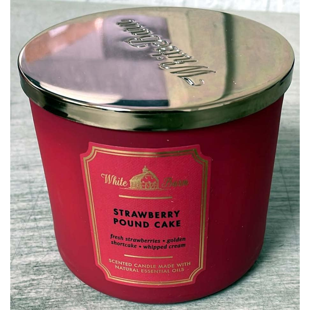 Bath and Body Works, White Barn 3-Wick Candle w/Essential Oils – 14.5 oz – 2021 Core Scents! (Strawberry Pound Cake)