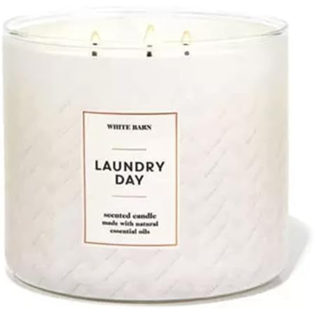 Laundry Day 3-Wick Candle w/Essential Oils , it smells like: a basket of laundry, fresh from the clothesline with the fragrance notes: fresh air, crisp eucalyptus and soft lavender.
