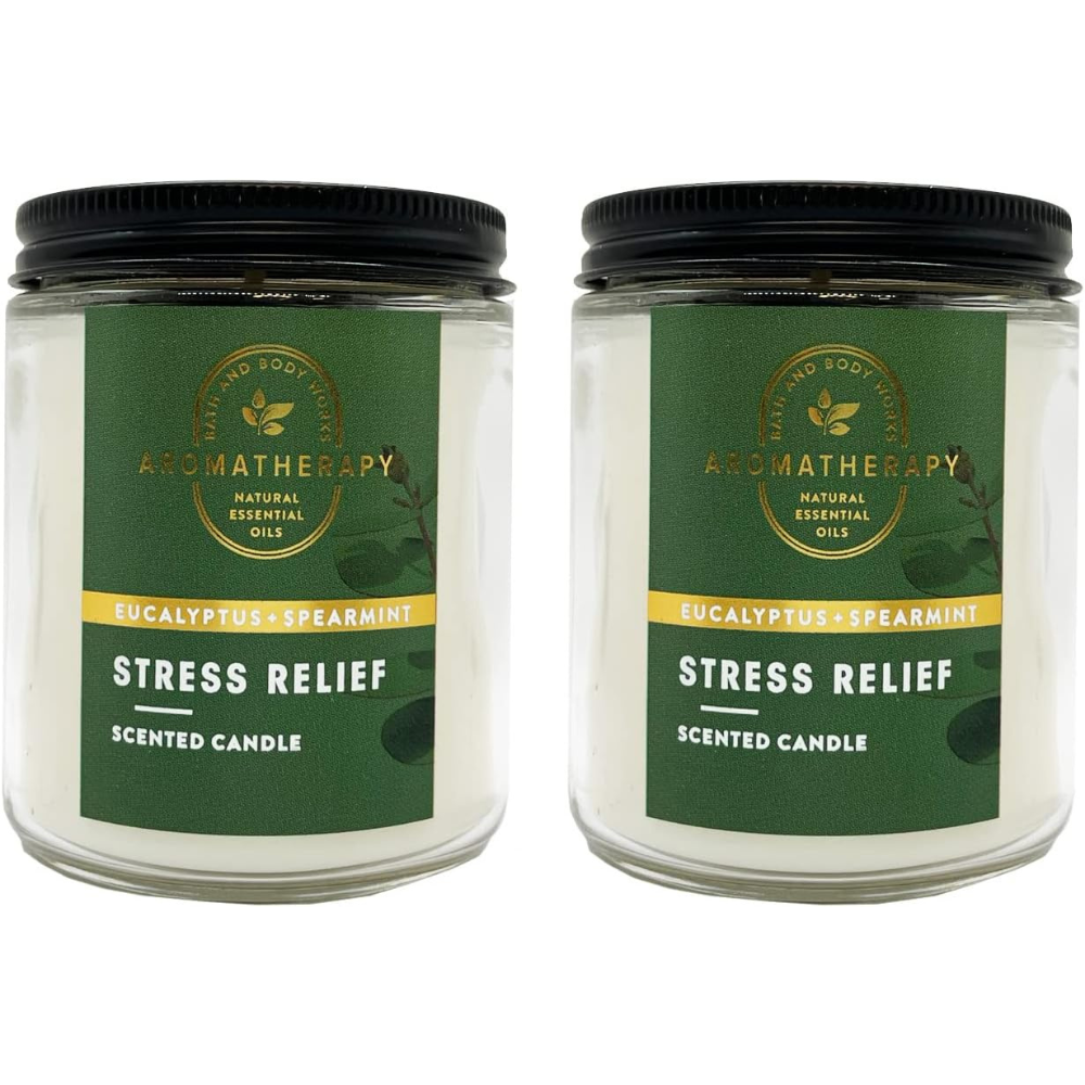 Bath & Body Works Stress Relief Aromatherapy Scented Candles | Eucalyptus Spearmint Scent | | Soy Based Wax | dfrDhp | NaturalEssential Oils | 2 Pack | 7 Oz Each