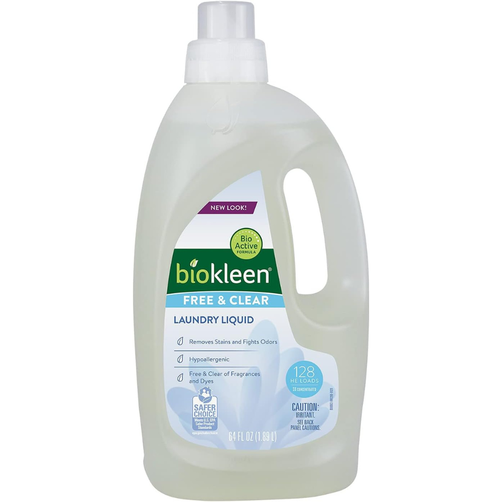 Biokleen Laundry Detergent Liquid, Concentrated, Eco-Friendly, Non-Toxic, Plant-Based, No Artificial Fragrance, Free & Clear, Unscented, 64 Ounces – 128 HE Loads/64 Standard Loads