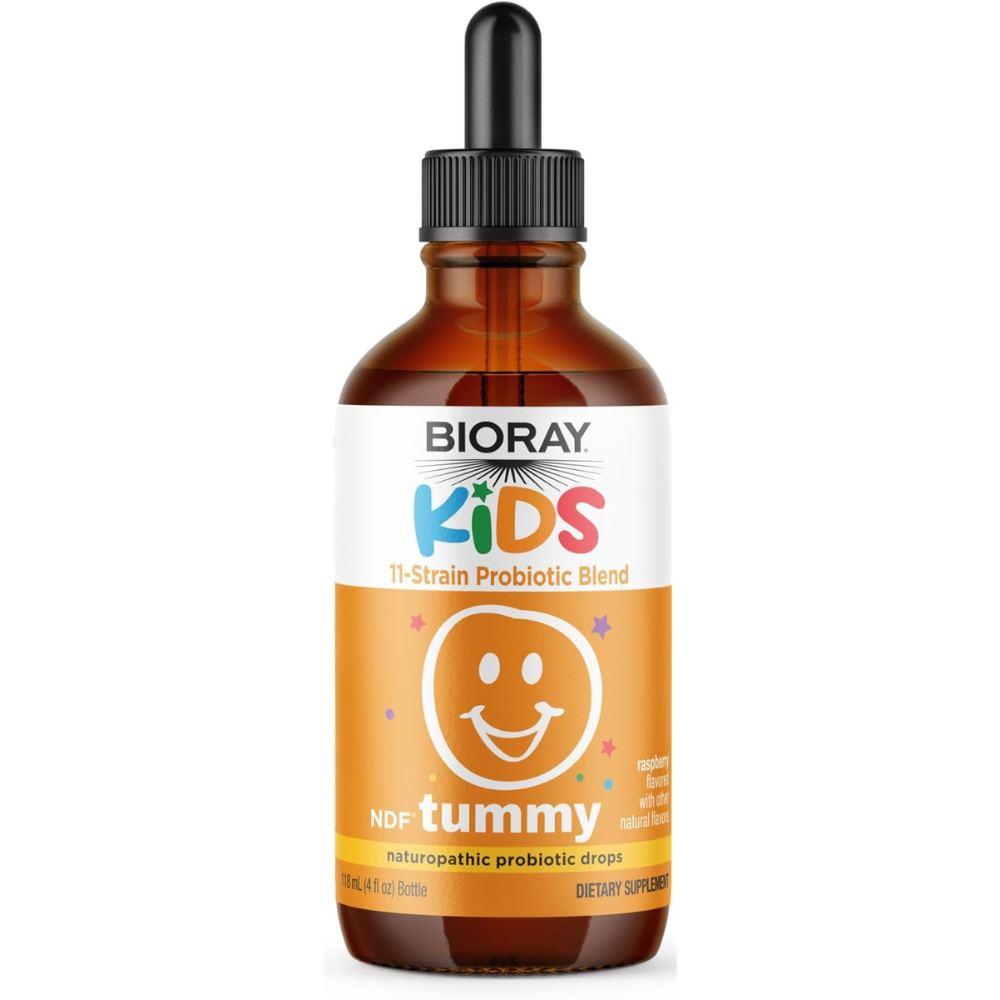 BIORAY Kids NDF Tummy, Raspberry – 4 fl oz (120 mL) – 11-Strain Probiotic Blend – Supports The Immune Response in The GI Tract – Non-GMO, Vegan, Gluten Free – Approx. 120 Servings