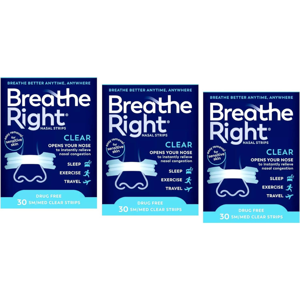 Breathe Right Nasal Strips to Stop Snoring, Drug-Free, Clear for Sensitive Skin, 90 count