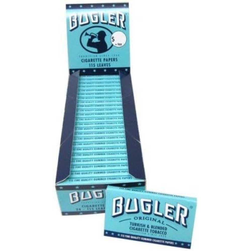 Bugler rolling papers have been in production since 1932. They are made in the old-fashioned rolling paper style from a mixture of flax and wood. These medium thickness and pre-gummed papers are a must for roll your own enthusiasts. Single Wide (70 mm) fine quality gummed cigarette papers. 115 leaves per pack and 24 packs for a total of 2760 leaves.