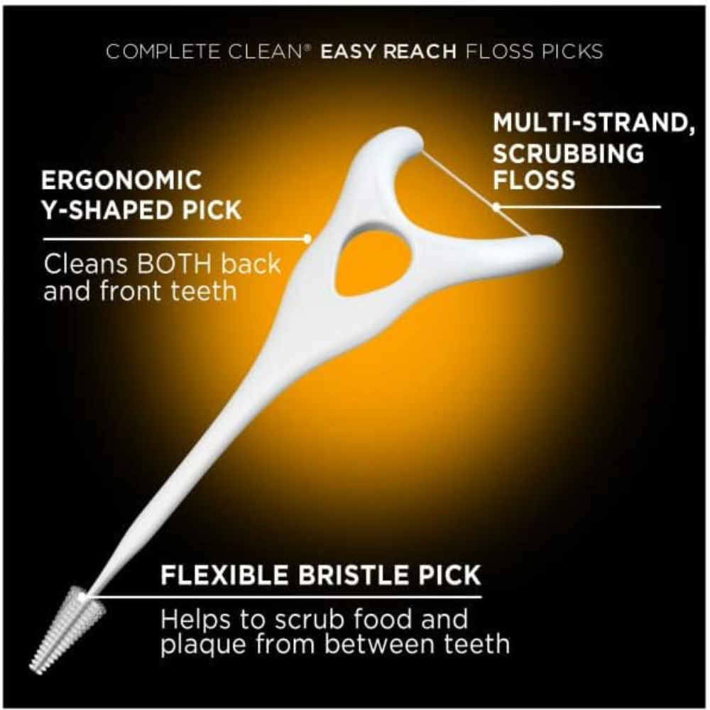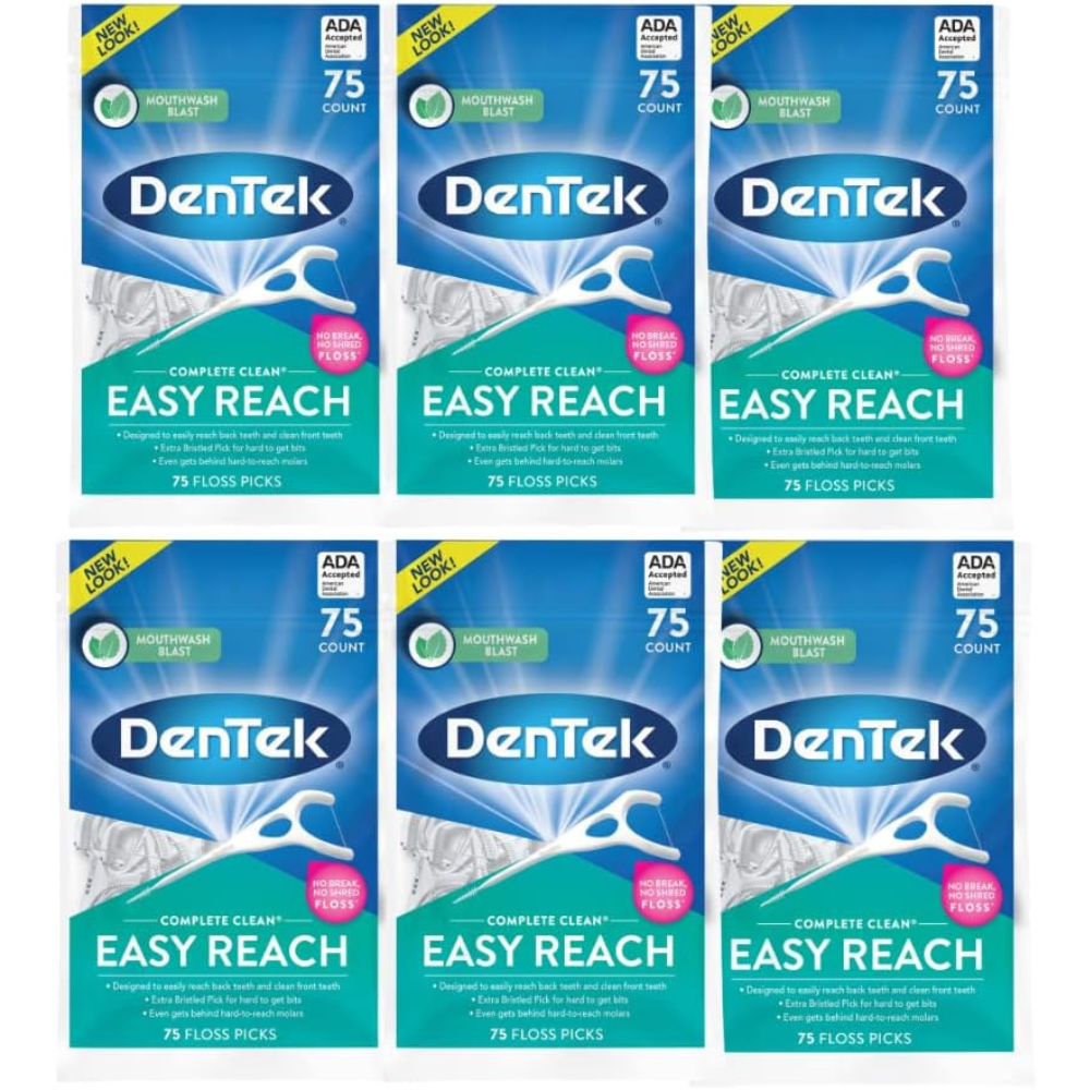DenTek Complete Clean Easy Reach Floss Picks, Advanced Fluoride Coating, Mouthwash Blast Flavor, 75 ct. (Pack of 6)