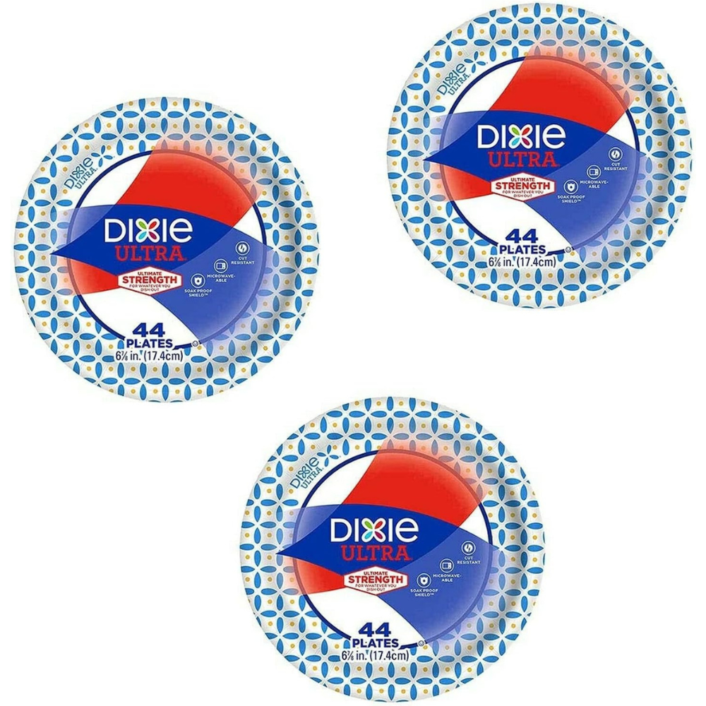 Dixie Ultra Heavy Duty Disposable Appetizer and Dessert Paper Plates, Small Plate 6 7/8″ (44 ct) (Pack of 3)