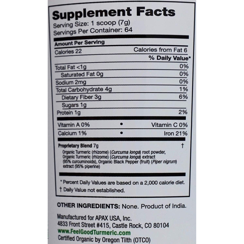 Feel Good Organic Turmeric w Curcumin Powder, 16 Ounces