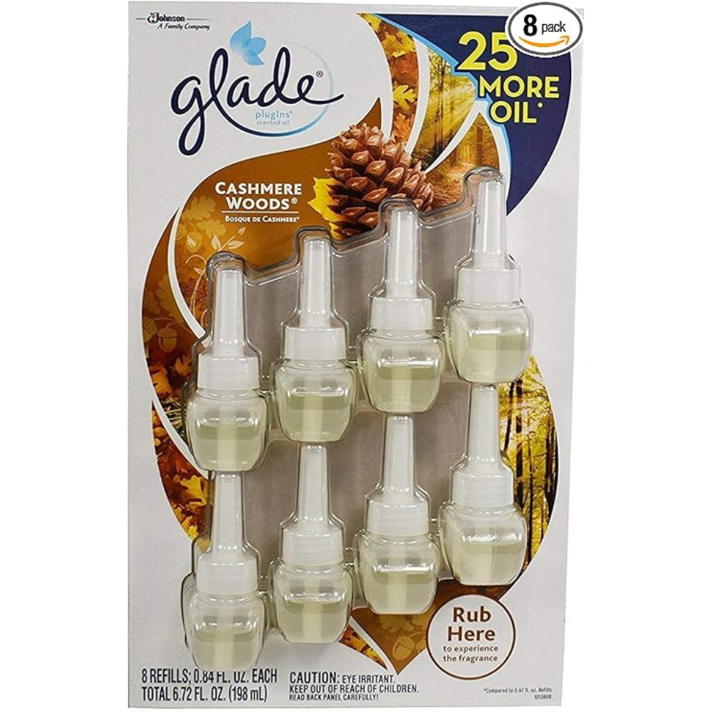 Glade Plugins Cashmere Woods 8 Refills 25% More, 0.84 Fl Oz (Pack of 8)