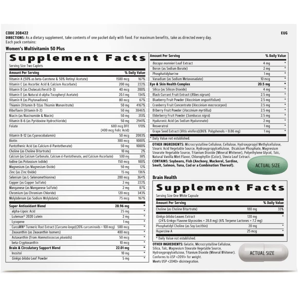 FORMULATION: GNC’s Women’s 50 Plus Vitapak Program is a comprehensive nutrient support system developed for women as they age. Get all of the essential vitamins and minerals your body needs in one convenient package – with no artificial colors, flavors, or preservatives.