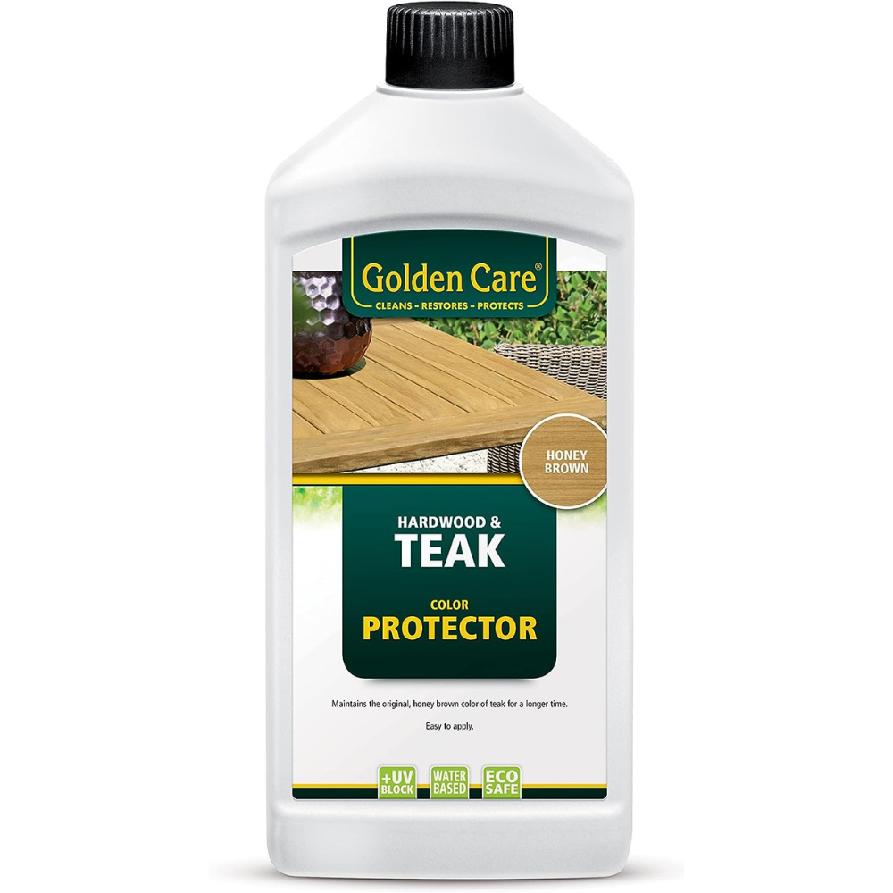 Golden Care Teak Protector helps to maintains the golden-brown color of teak for a longer time by protecting your furniture from harmful UV rays. Most teak-oils/sealers contain hazardous solvents/voc’s, but the Protector is completely water-based and solvent-free, which means a non greasy application.
