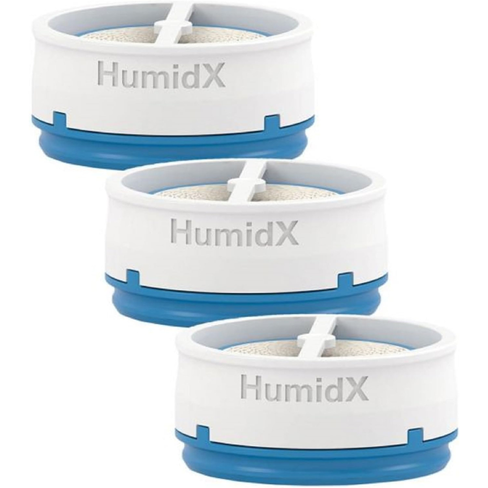 The replacement Standard HumidX is a three-pack of Waterless Humidification Units for use with the AirMini Travel CPAP Machine from ResMed. The product helps add moisture to the air and is especially useful in dry climates. Designed for the AirMini Mask Setup Pack for AirFit P10 Nasal Pillow CPAP Mask and the AirMini Mask Setup Pack for AirFit N20 Nasal CPAP Mask, this product is not compatible with any other machine, mask, or hose.