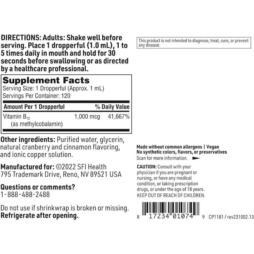 1 mg (1000 mcg) of vitamin B12 per dropper full.
