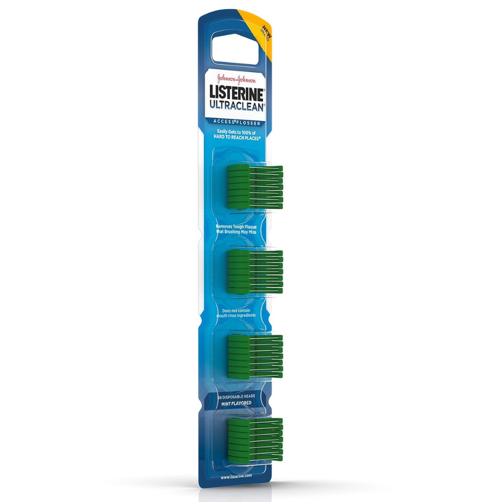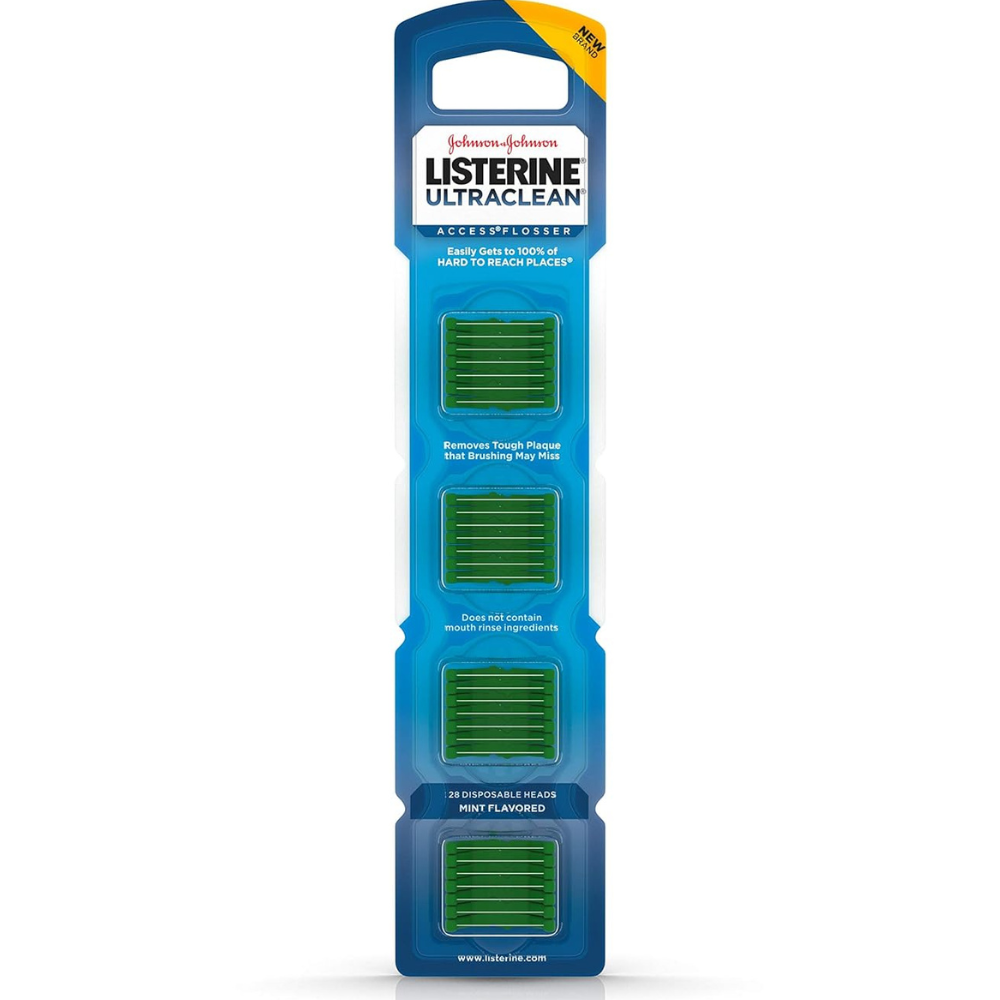 Easily reach between your teeth with the Listerine Ultraclean Access Flosser Refill Heads. This pack of 28 disposable floss heads features high-tenacity yarn that withstands breakage. Flossing removes plaque on teeth that brushing may miss and is an important step in your oral care routine. These flosser heads are mint flavored, leaving your mouth feeling fresh and clean. For use with the Listerine Ultraclean Access Flosser.