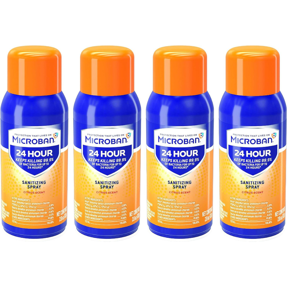 Microban 24 Sanitizing Spray kills 99.9% of viruses and continues working throughout the day to provide long-lasting protection for surfaces*. Microban 24, the sanitizing spray 4/5 doctors would use at home is now available in a convenient travel size for peace of mind on-the-go. This 3-in-1 cleaner sanitizes for 24 hours* disinfects and eliminates odors. It can be used on a variety of hard, non-food-contact surfaces as well as soft surfaces.
