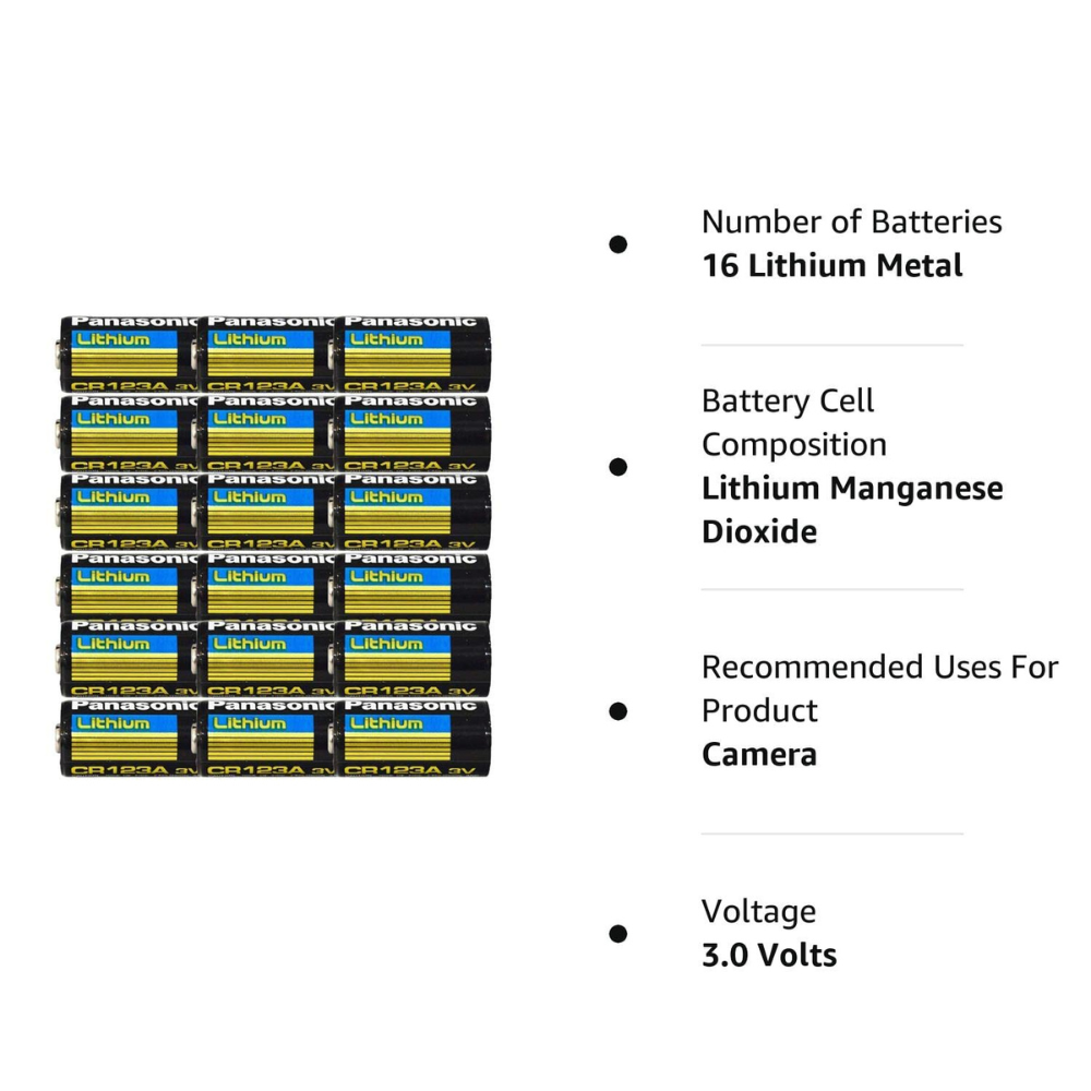 Developed by Panasonic, the CR123A lithium battery has the following features: high safety and reliability; high current pulse discharge capability; superior shelf life/minimal self-discharge; operating temperature (-40°c~70°c); high energy density.