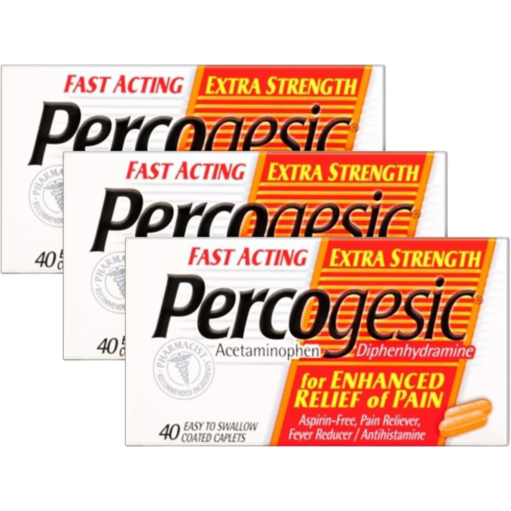 Percogesic Extra Strength Pain Reliever Tablets, for enhanced relief of pain. The easy-to-swallow coated caplets give you enhanced relief from aches and pain associated with colds, flu, fever, arthritis and more. It also relieves runny noses and sneezing. Dual Action Relief. Pharmacist recommended ingredients, Acetaminophen and Diphenhydramine HCl, provide aspirin-free relief that you can trust without worrying about a prescription. Don’t let pain get in your way! When aches and pain come your way, you can rely on Percogesic Extra Strength to give you the fast, effective relief you need to get out and get on with your day.