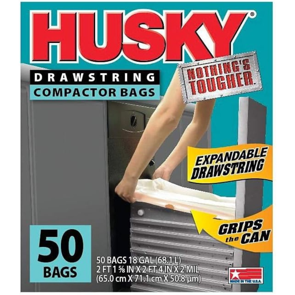 Poly America Husky HK18XDS050W Drawstring Compactor Bag (50 Pack), 18 Gallon, 2 Boxes