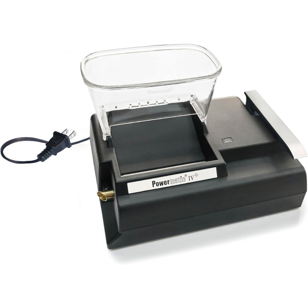 Powermatic IV Plus is an electric cigarette injector. It has the high precision aluminum frame for a smooth injection. This machine is designed to work with both King and 100mm tubes. Features a collection of useful tools for cleaning and maintenance. Includes a 1 year manufacturer’s warranty.