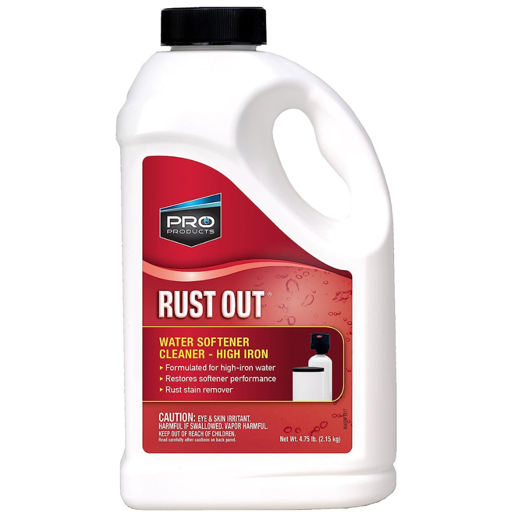 Rust Out softener rust remover chemically removes iron and rust build-up that coats the resin beds and fouls the softener. This iron build-up is not totally removed during normal regeneration of a water softener. Using Rust Out softener rust remover in a water softener will eliminate rust and foreign matter from the resin bed which increases the life of the softener and reduces rust staining on household fixtures and other surfaces. We recommend using the softener rust remover regularly as preventative maintenance to ensure the softening and recharging efficiency of the softener’s resin bed. Additionally, in applications where iron is present you can use our well water formula to fight annoying rust stains.
