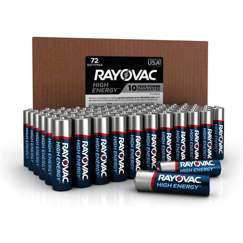 These AA Alkaline Batteries are ideal for high use devices including toys, flashlights, remotes and more. Plus, they’re designed to prevent damaging battery leaks and tested twice prior to shipment to ensure reliability. These Double A batteries contain power rings for consistent performance and a max capacity can for safely containing and delivering maximum power. Rayovac High Energy AA Alkaline Batteries are long lasting, guaranteed – plain and simple or your money back*. *Money Back Performance Guarantee