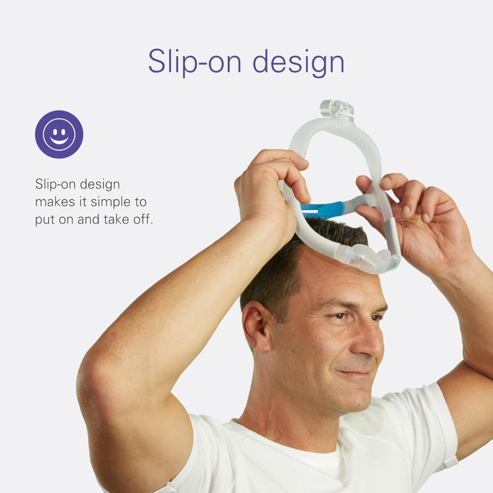 The replacement headgear for the ResMed AirFit N30i and P30i is available as one-size-fits-all. Outfitted with instant hook-and-loop straps straps and designed for minimal touchpoints, the AirFit N30i and P30i CPAP Mask headgear connects at the back of the head and doesn’t touch the front of your face to maximize your comfort. The item for sale is the replacement CPAP headgear for the ResMed AirFit N30i mask system. In the Freedom category, this nasal mask provides under-the-nose coverage and sports a silicone cushion. The soft, flexible silicone cushion comfortably adapts to your movements. The top-of-head connection keeps air tubing out of your way for more freedom, perfect for a side sleeper, stomach sleeper, or frequent roator. The nasal cradle cushion sits comfortably under the nose rather than over it. New QuietAir diffused venting technology breaks up exhaled air for a quiet experience. It’s perfect if you wear glasses, watch TV in bed, or sleep on your stomach. The slip-on design makes it simple to put on and take off. The quick-release elbow allows you to get up at night and disconnect without removing the mask. This purchase is for the ResMed AirFit N30i headgear only. Includes the headgear for the ResMed AirFit N30i nasal CPAP mask. This purchase does not include the AirFit N30i mask frame system or nasal cradle cushion. A prescription is required for the complete mask system. Every day, Resmed employees come to work with a focus on building and supporting technology that helps people live healthier, happier lives. It began over 30 years ago with the invention of a machine that helped people breathe easier and sleep better. It continues today with digital health solutions that help keep people out of the hospital. We’re leading the way in cloud-connected medical devices that transform care for people with sleep apnea, COPD, and other chronic. diseases