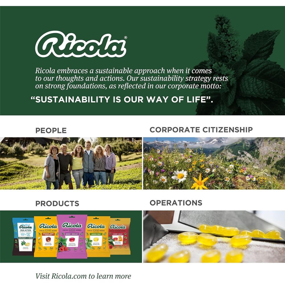 HERBAL COUGH DROPS: Ricola has been trusted for cough & sore throat relief for generations. The soothing properties of Ricola’s cough drops bring together the taste of Swiss Alpine farmed herbs like peppermint, thyme & lemon balm in these tasty drops.
