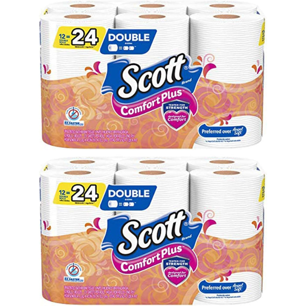 Scott ComfortPlus Toilet Paper, 12 Double Rolls, Bath Tissue (2 Pack)
