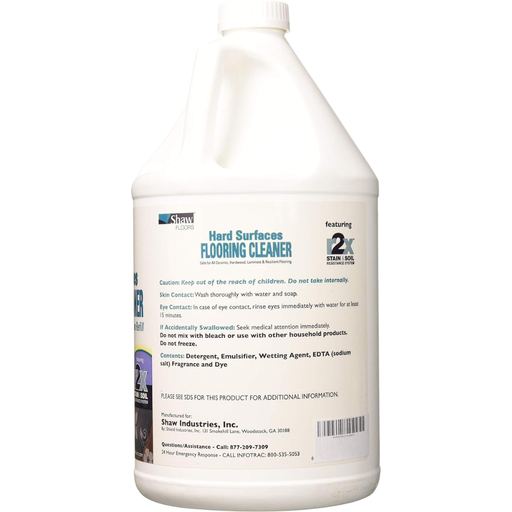 Shaw R2X Hard Surface Floor Cleaner is a top-choice cleaner for all types of hard surface flooring, including hardwoods with polyurethane finish, ceramic, laminate, porcelain tile and vinyl flooring. The rinse-free formula thoroughly removes dirt, grease and scuff marks without leaving behind streaks or sticky residue. Shaw floor cleaner may be applied using a terry cloth mop following a thorough sweep or vacuum. This is a gallon-sized refill of Shaw R2X (R2xHS G01C) which may be used to refill Shaw R2X Hard Surfaces Flooring Cleaner Spray.