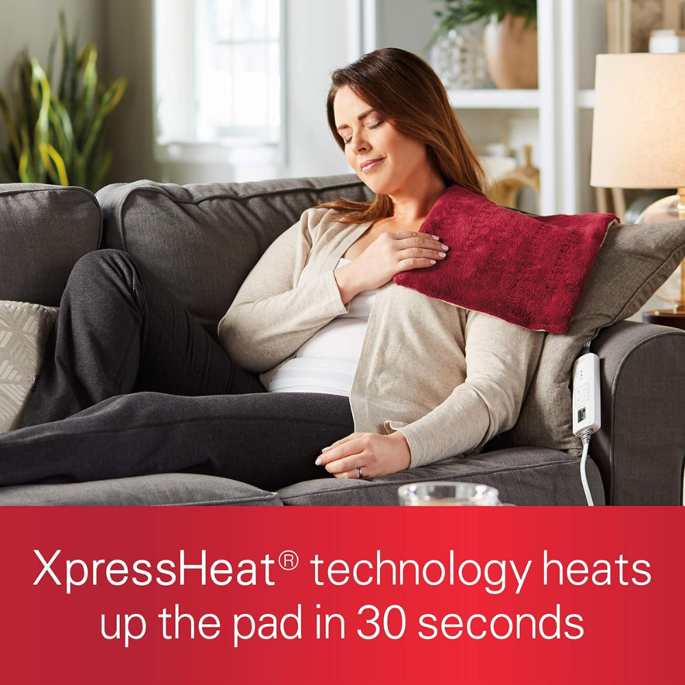 The electric heating pad features XpressHeat technology that heats up the pad in 30 seconds, to soothe away tension and pain fast; Moist heat option for deep therapeutic relief