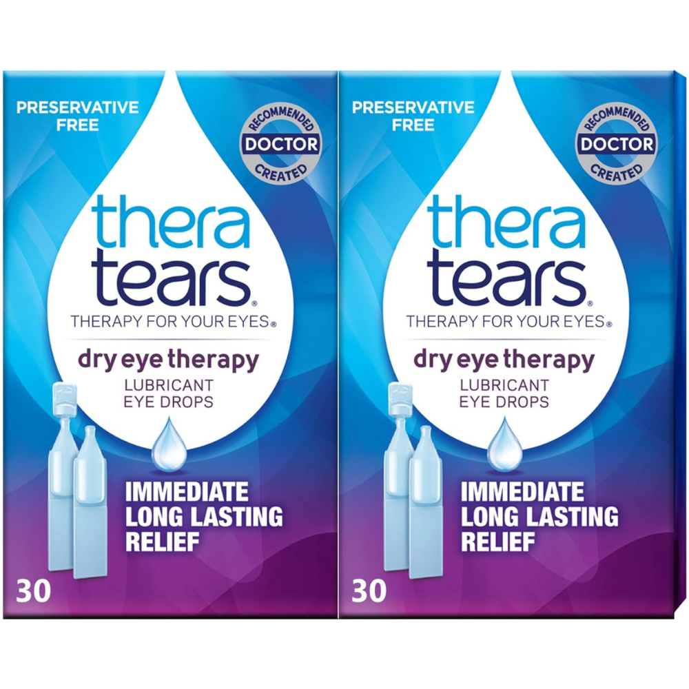 TheraTears Dry Eye Therapy Lubricating Eye Drops for Dry Eyes, Preservative Free eye drops, 30 Single-Use Vials (2 Pack)