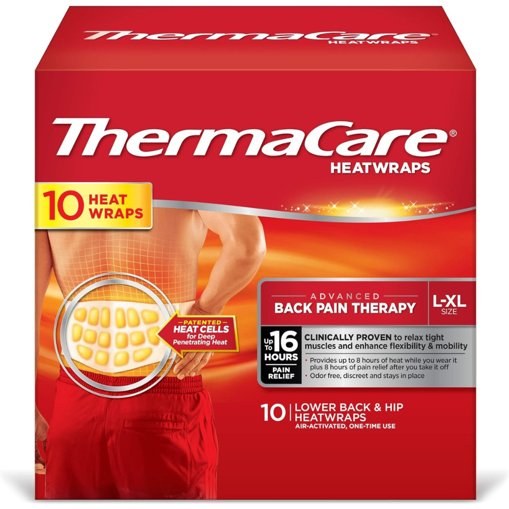 Back pain is often caused by tight muscles. ThermaCare Back Pain Therapy HeatWraps deliver 8 hours of continuous, therapeutic warmth and keep relieving pain for an additional 8 hours after you take it off. In fact, the American College of Physicians (ACP) recommends real heat as a first defense against acute lower back pain. Available in two sizes, these single-use wraps are designed to provide pain relief at home or on the go.