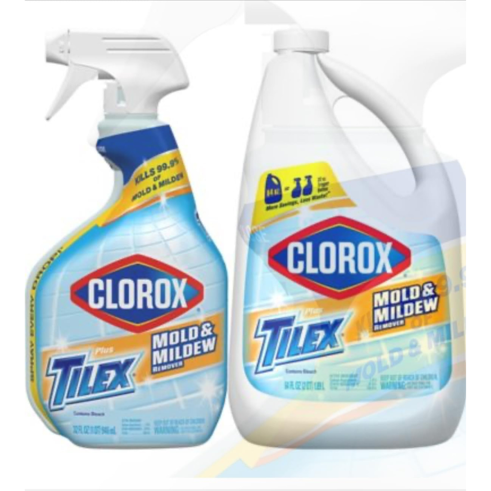 Tilex Mold & Mildew Remover Kills 99. 9% Of household mold & mildew contains Clorox bleach, includes a 2 qt (64 fl oz.) 1. 89l & a 1 qt (32fl oz.) 946 ml