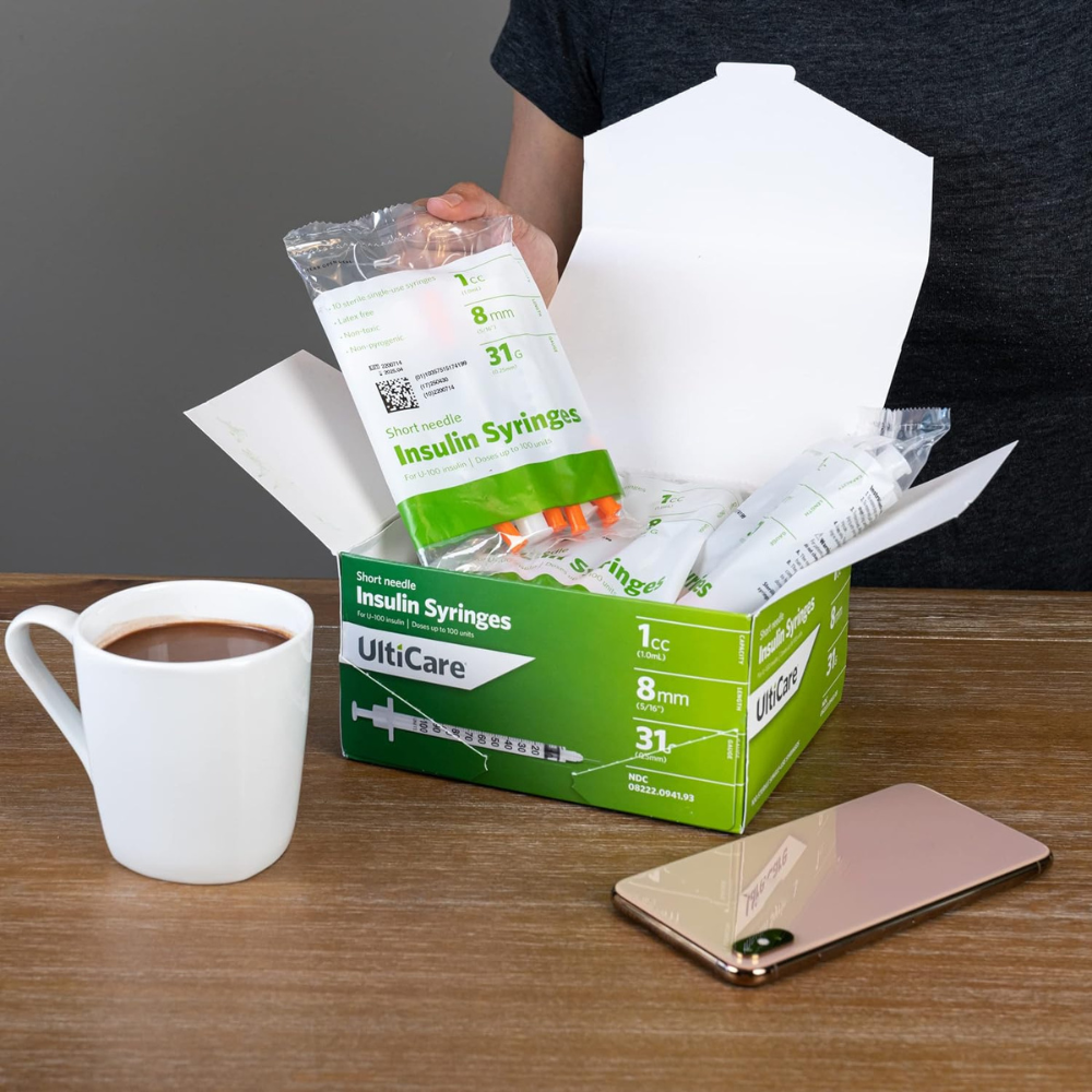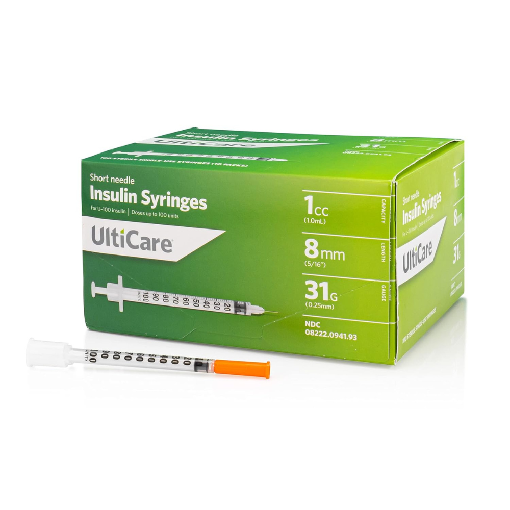 UltiCare U-100 Insulin Syringes, Comfortable and Accurate Dosing of Insulin, Compatible with Any U-100 Strength Insulin, Size: 1cc, 31G x 8mm, 100 ct Box