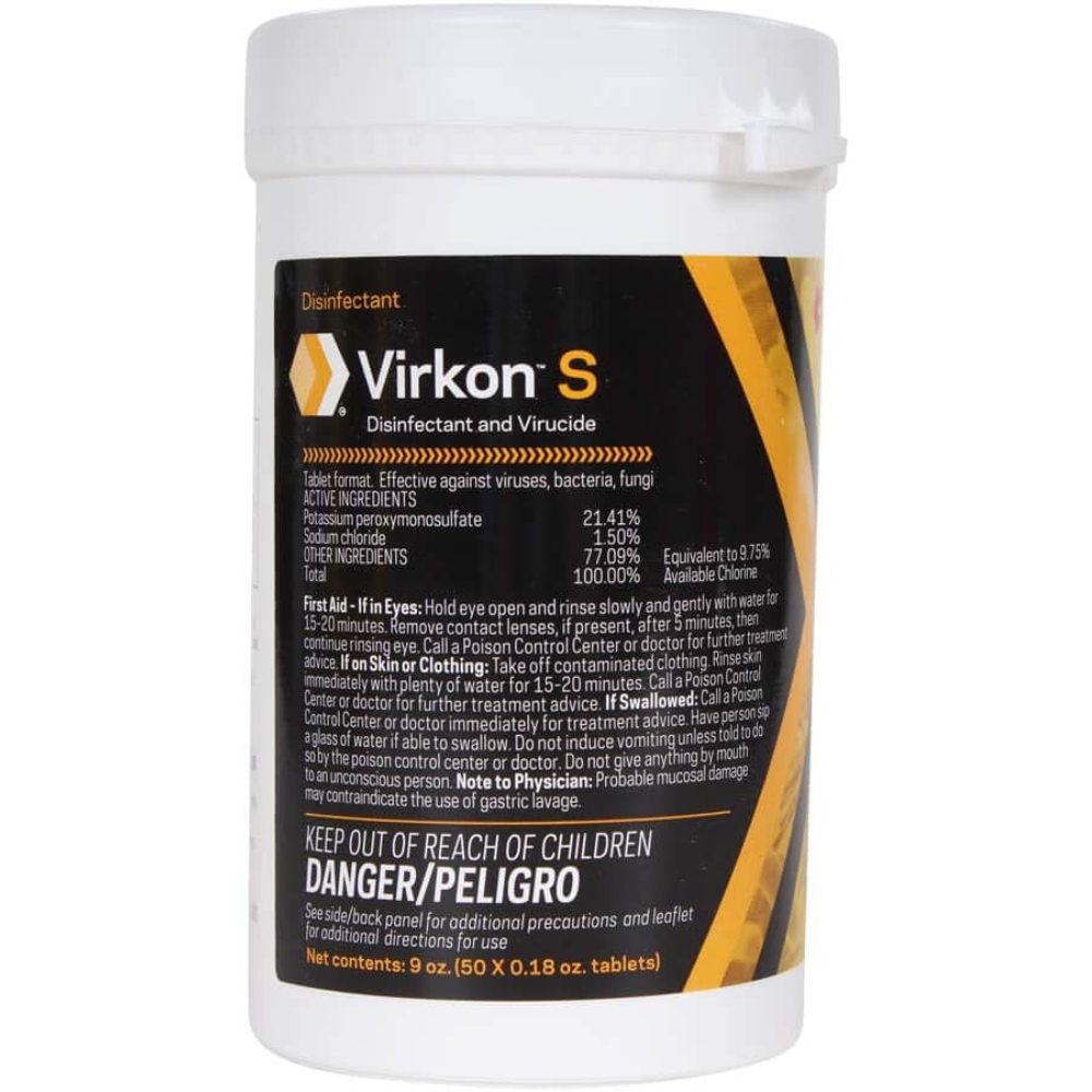 Virkon S is a balanced, stabilized blend of peroxygen compounds, surfactant, organic acids and inorganic buffer. Virkon S is recommended for use as a hard surface disinfectant in livestock production and transportation facilities. Virkon S delivers 99. 9999% kill of numerous pathogens including 31 bacterial strains, 58 viruses and 6 fungi with no evidence of resistance, eliminating the need to rotate disinfectants to avoid resistance buildup.